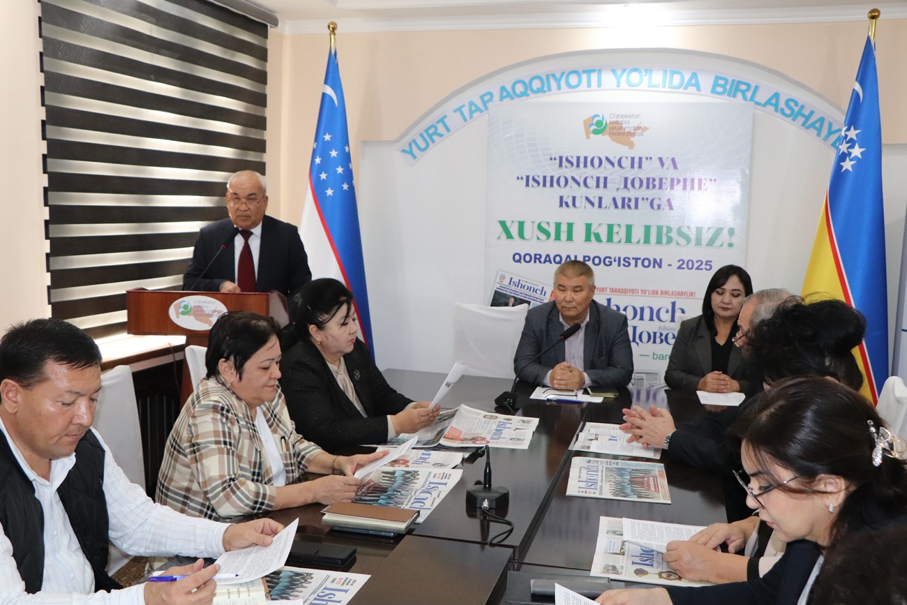Өзбекстан кәсиплик аўқамлары Федерациясы Қарақалпақстан кеңесинде «Ишонч күнлери» шеңберинде дослық руўхындағы дөретиўшилик ушырасыўы болып өтти. Онда «Ishonch.uz» сайтының координаторы, тәжирийбели журналист А.Абдураҳмонов ҳәм «Ишонч» газетасының координаторы Д.Худайберганова қатнасты.