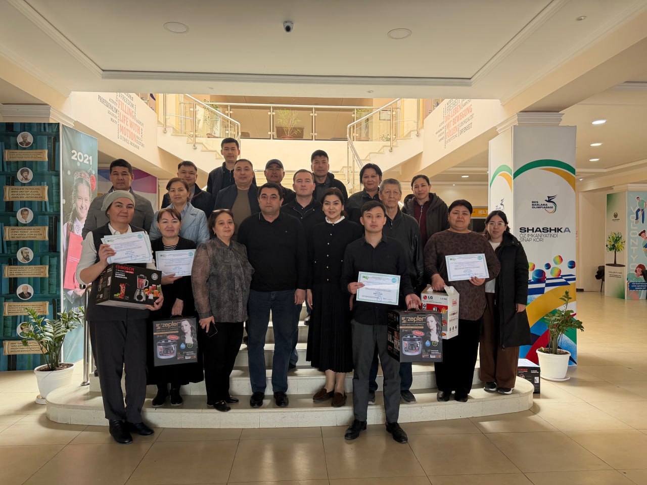 Ótkerilgen jarıs jeńimpazlarına Ózbekstan mámleketlik mákemeleri hám jámietlik xızmet xızmetkerleri kásiplik awqamı Qaraqalpaqstan Keńesiniń baslıǵı D.Qutlımuratova tárepinen húrmet jarlıqları hám estelik sawǵaları tapsırıldı.